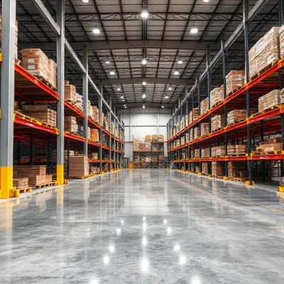 Durable surfaces that support constant forklift traffic, heavy loads, and provide clean, dust-free environments for inventory.